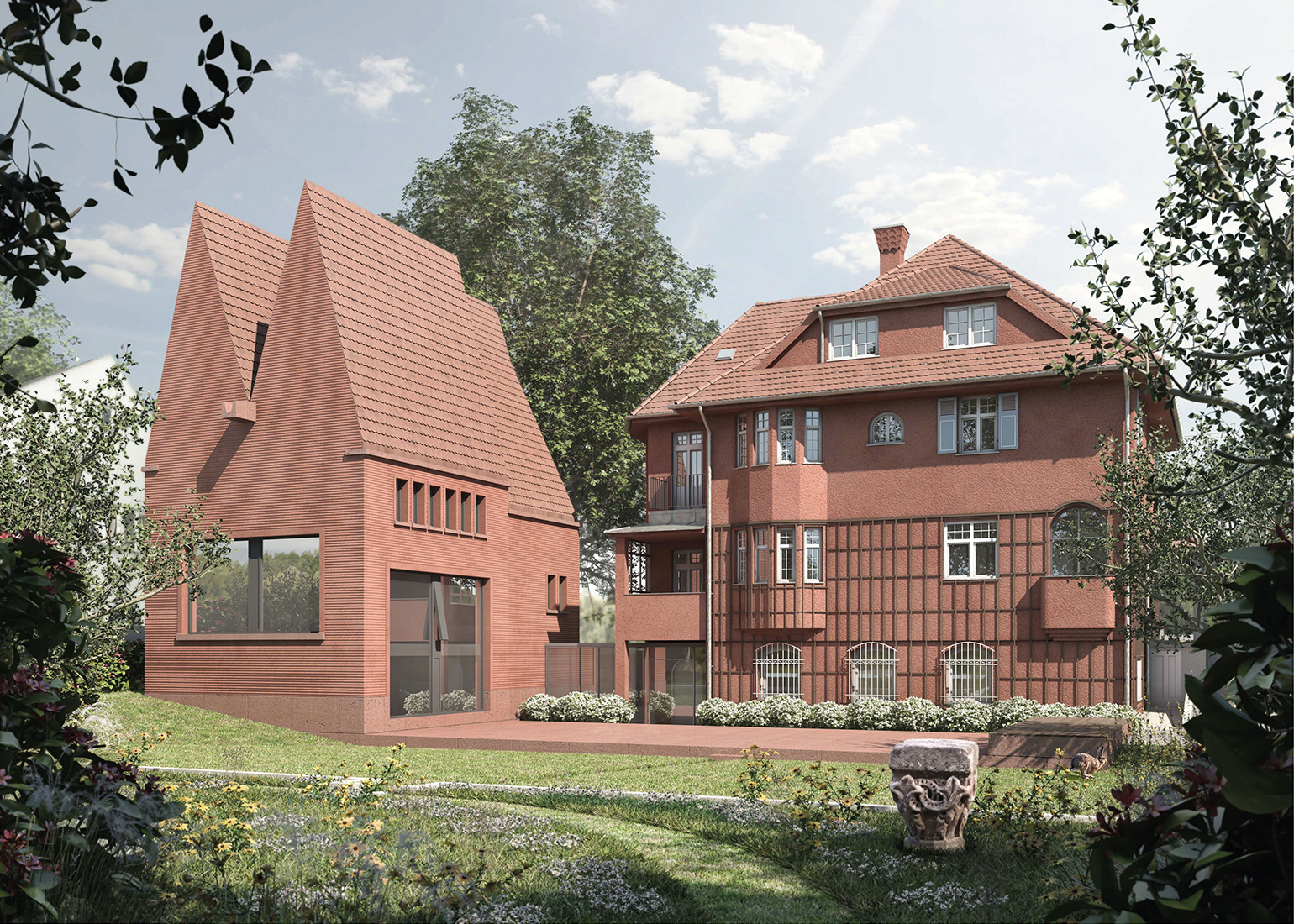 Der prämierte Entwurf des Architekten Christoph Mäckler aus Frankfurt für einen Ergänzungsbau zu dem als „Buchegger Villa“ bekannten Gebäude an der Thelottstraße 11 in Augsburg befindet sich derzeit im baurechtlichen Genehmigungsverfahren (Bauvoranfrage).